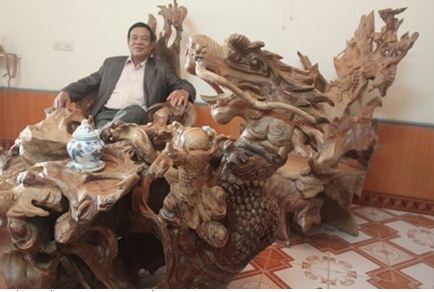 Nhiều đại gia từ TPHCM và Hà Nội cũng lên Chiêm Hoá thưởng lãm bộ bàn ghế đồ sộ này. Ông Vịnh bảo, khách ở Hà Nội đã trả giá 2 tỷ nhưng ông không bán. Bởi cái giá ấy mới bằng một nửa so với giá mà một đại gia châu Âu đưa ra.